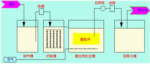 MBR一体化设备处理生活污水的工艺流程如下图所示: